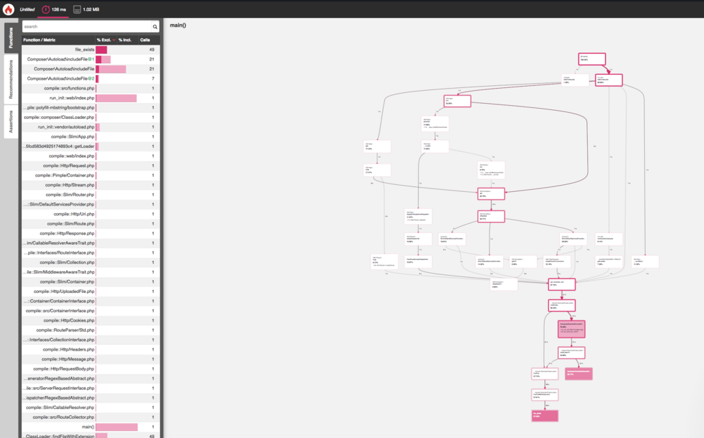 # 対象のserver起動 $make compose id=xxx token=yyy [master]@(blackfire-with-slim) docker-compose build Building web Step 1/10 : FROM php:7.1.10 ---> c342f917459a Step 2/10 : RUN apt-get update ---> Using cache ---> 8f08514cd607 Step 3/10 : RUN apt-get install -y wget ---> Using cache ---> 558f46f226ce Step 4/10 : RUN wget -O - https://packagecloud.io/gpg.key | apt-key add - ---> Using cache ---> dc02abcab12c Step 5/10 : RUN echo "deb http://packages.blackfire.io/debian any main" | tee /etc/apt/sources.list.d/blackfire.list ---> Using cache ---> 947920d5728f Step 6/10 : RUN apt-get update ---> Using cache ---> 98aa1854625d Step 7/10 : RUN apt-get install -y blackfire-agent ---> Using cache ---> d0725ad5b875 Step 8/10 : COPY ./blackfire.ini /etc/blackfire/agent ---> Using cache ---> 9a8965d48d25 Step 9/10 : RUN /etc/init.d/blackfire-agent restart ---> Using cache ---> f6360b5dc8d4 Step 10/10 : RUN apt-get install blackfire-php ---> Using cache ---> 40f8638aca26 Successfully built 40f8638aca26 Successfully tagged blackfire-with-slim_web:latest docker-compose up Starting blackfire-with-slim_web_1 ... done Attaching to blackfire-with-slim_web_1 web_1 | make: Entering directory '/opt/app' web_1 | /etc/init.d/blackfire-agent start web_1 | Starting Blackfire Agent: blackfire-agent. web_1 | /usr/local/bin/php -S 0.0.0.0:8080 -t web # 別ターミナルで実行してみます $ blackfire curl 'http://localhost:8080/hey' -H 'Origin: http://localhost:8080' -H 'Accept-Encoding: gzip, deflate, br' -H 'Accept-Language: ja-JP,ja;q=0.9,en-US;q=0.8,en;q=0.7' -H 'User-Agent: Mozilla/5.0 (Macintosh; Intel Mac OS X 10_12_6) AppleWebKit/537.36 (KHTML, like Gecko) Chrome/67.0.3396.99 Safari/537.36' -H 'Content-Type: application/json' -H 'Accept: */*' -H 'Referer: http://localhost:8080/' -H 'Connection: keep-alive' --data-binary '{"name":"blackfire"}' --compressed Profiling: [########################################] 10/10 Blackfire cURL completed Graph URL https://blackfire.io/profiles/XXXXXXX/graph No tests! Create some now https://blackfire.io/docs/cookbooks/tests No recommendations Wall Time 126ms I/O Wait n/a CPU Time n/a Memory 1MB Network n/a n/a n/a SQL n/a n/a
