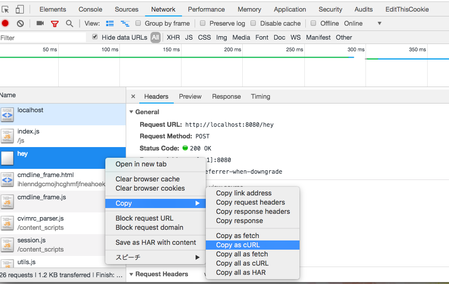 curlでのリクエストを取れればいいんですけど、そんなときに便利なのがchromeのdev toolですね。